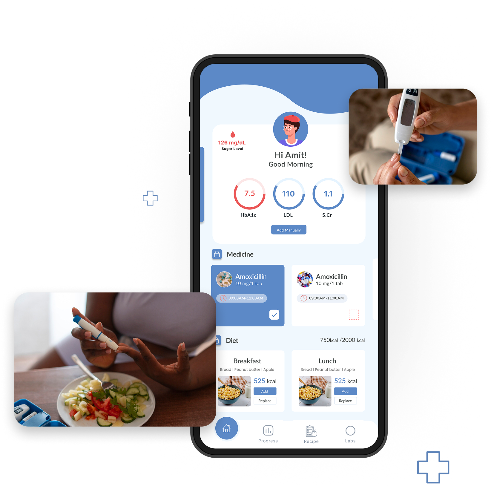 your blood sugar levels, manage your medication, and stay